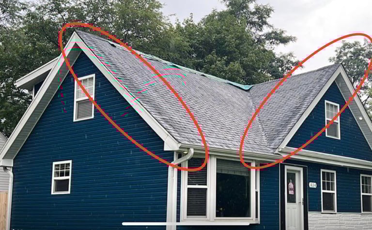 This occurs when a shingle has been completely torn off the roof due to factors like strong winds, storms, or aging materials. This leaves an exposed area, which can lead to water leaks and structural damage.