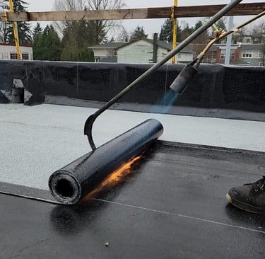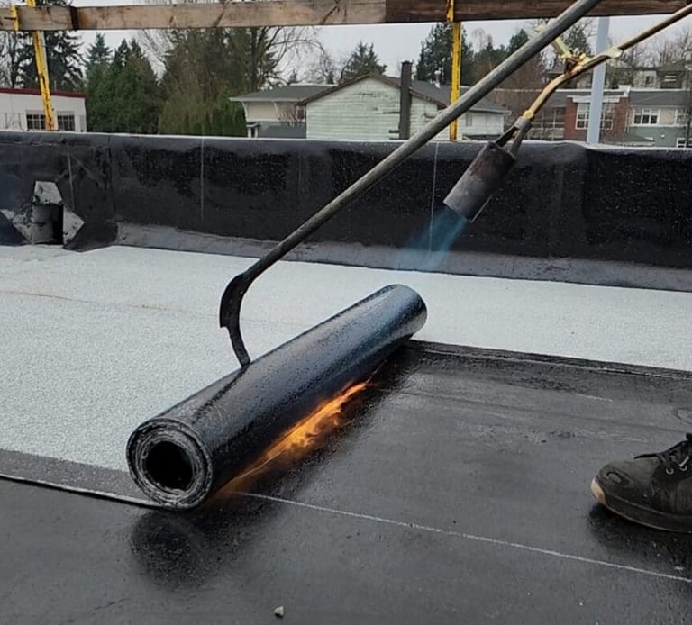 Torch-on membrane roofing is a durable, multi-layered system designed to provide exceptional waterproofing for flat and low-slope roofs. Made from modified bitumen, this roofing system is applied using heat to bond the layers securely, creating a seamless, weather-resistant surface. It is a popular choice for both residential and commercial properties due to its durability and long lifespan.